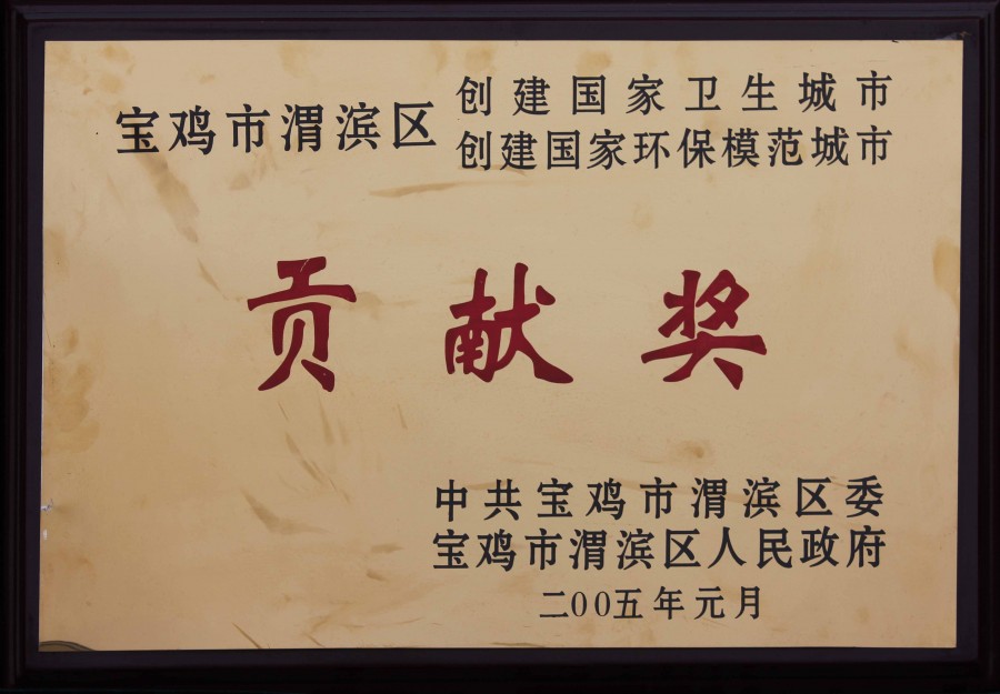 宝鸡市渭滨区创建国家卫生城市、创建国家环保模范城市贡献奖